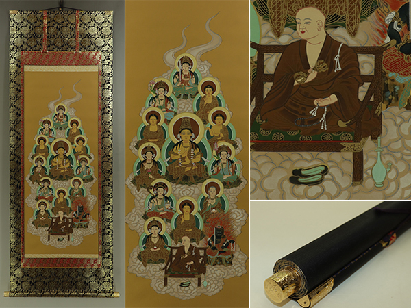 - 【肉筆】仏画【真言十三佛】◆絹本◆合箱◆掛軸 t06007