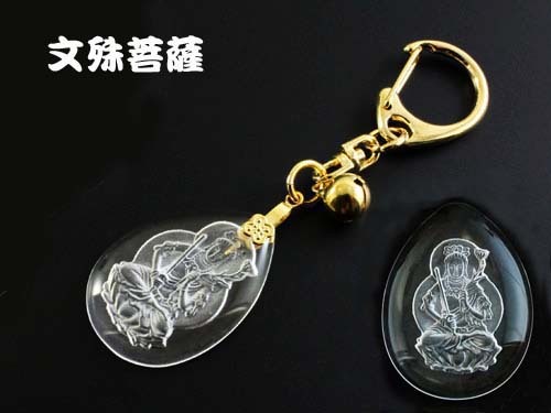 - 【彫刻水晶】守りご本尊様 キーホルダー (文殊菩薩) 231026