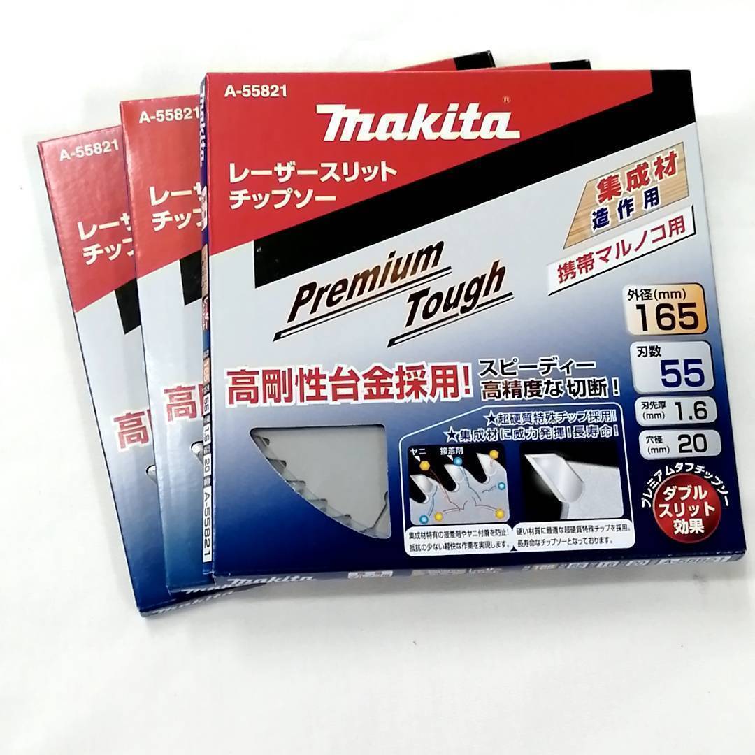 > マキタ 165mm 55T レーザースリットチップソー A-55821×3枚 [ プレミアムタフコーティング 高剛性]■安心のマキタ純正/新品/未使用■