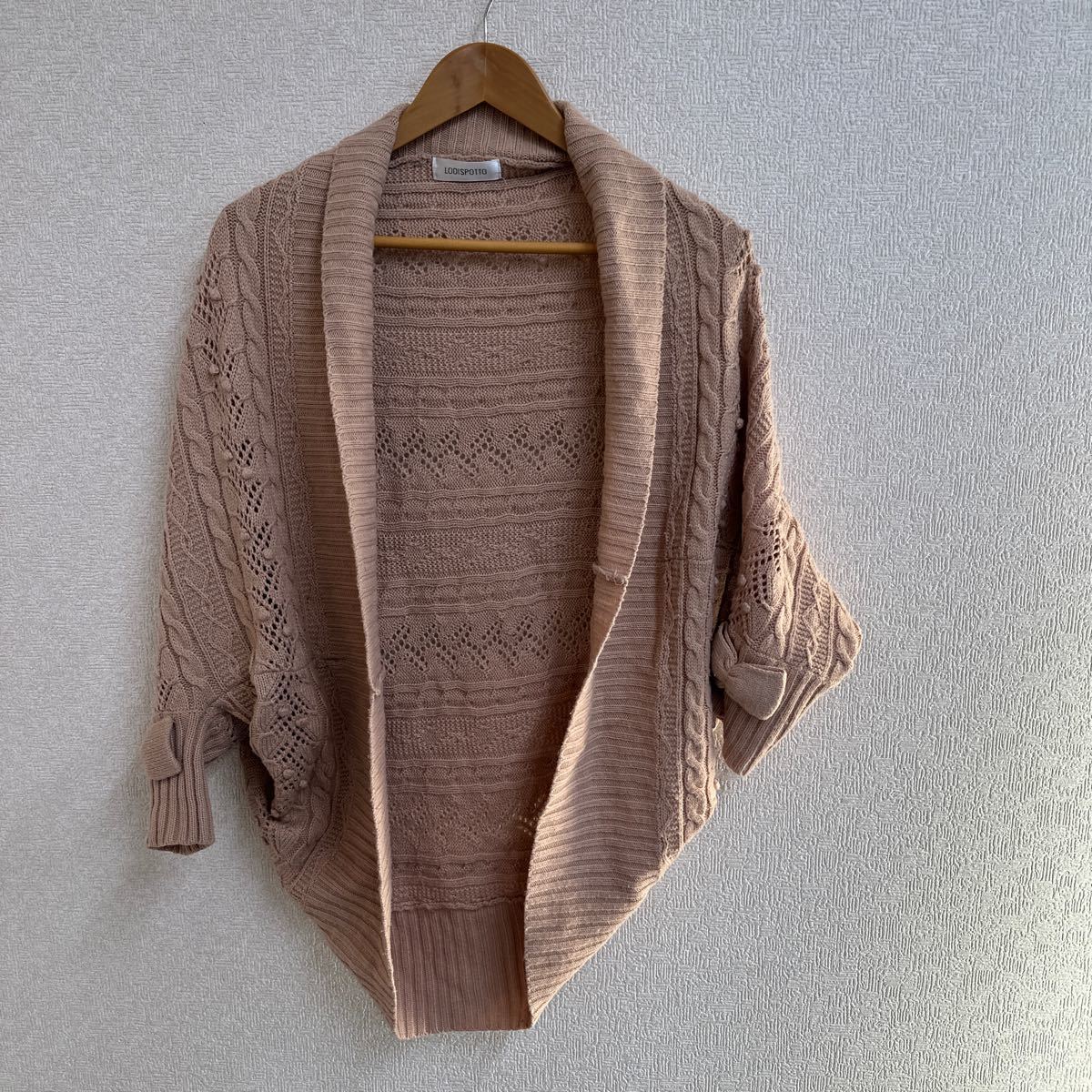 - 美品 ロディスポット ピンクベージュ リボン カーディガン Mサイズ ニットカーディガン