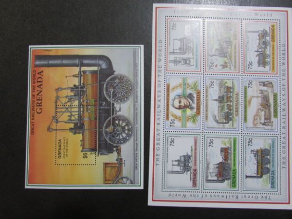 - D 世界の鉄道 グレナダ 世界の鉄道 9種小型完+小型 1991.3.26