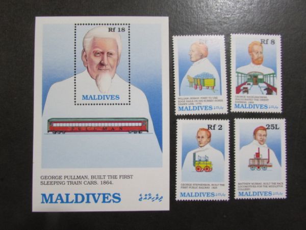 - D 世界の鉄道 モルディブ 輸送鉄道の功労者 4種完+小型 1989.12.26