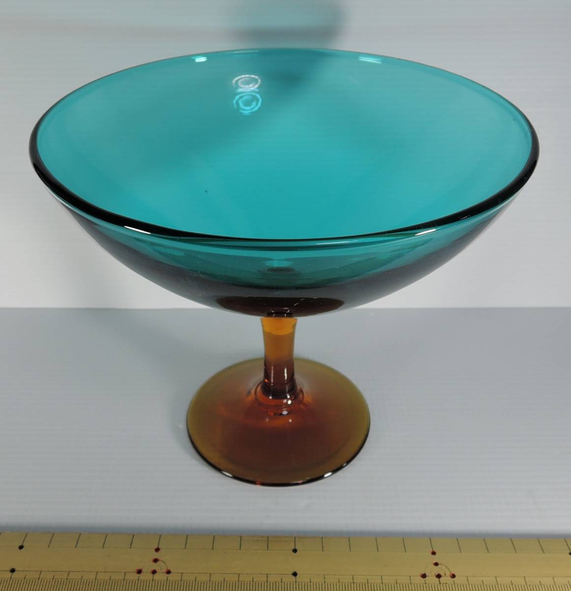 > ☆Z38■大きな カクテルグラス(小) インテリア置物/花器 アンバー/青緑■直径180mmx高さ142mm