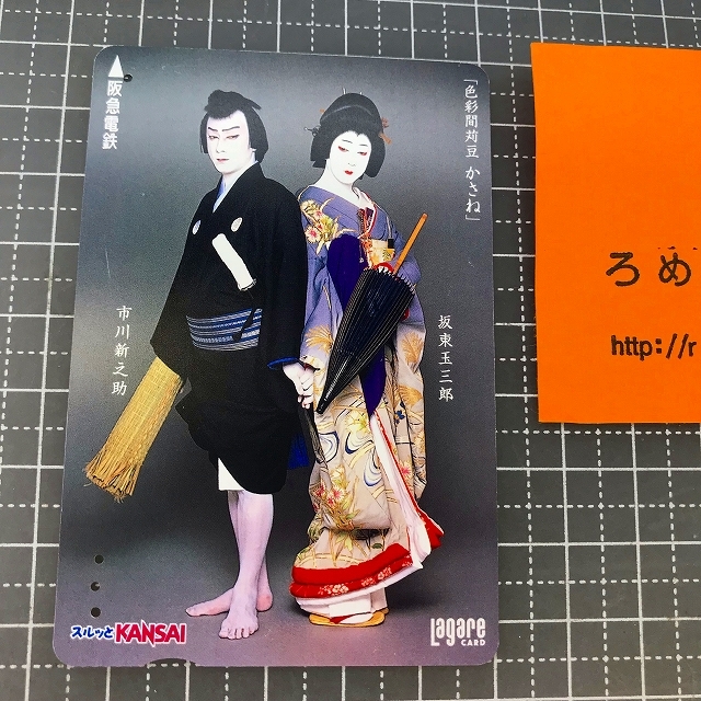 > ∞●【使用済カード♯9417】スルッとKANSAIラガールカード「色彩間苅豆かさね/坂東玉三郎&市川新之助/歌舞伎」阪急電鉄【鉄道/電車】