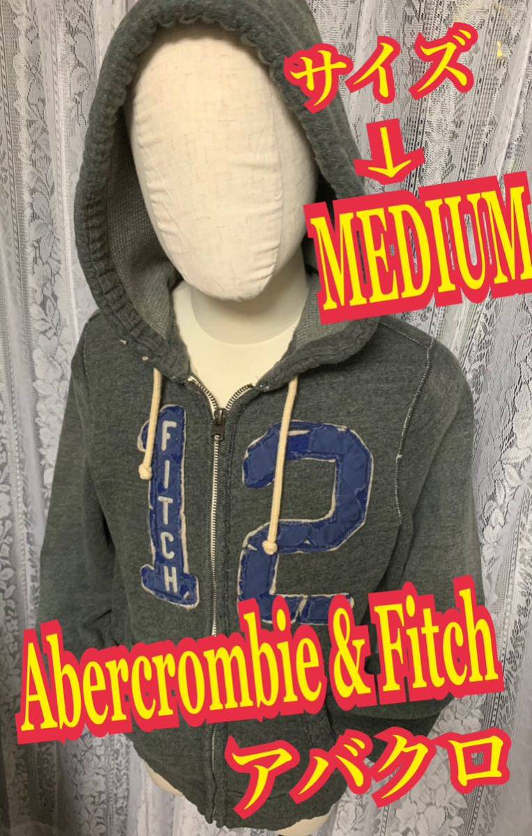 > Abercrombie & Fitchアバクロ スウェット パーカー フルジップ ビンテージ加工 グレー M