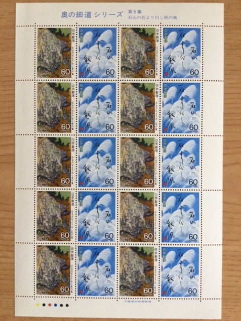 > 奥の細道シリーズ 第9集 石山の 石より白し 秋の風 1シート (20面) 切手 未使用 1989年