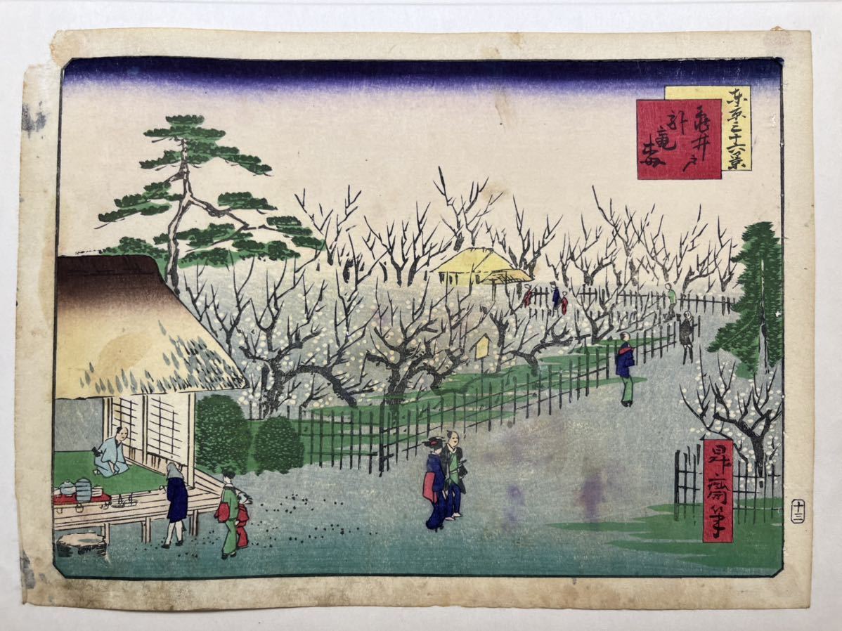 - 【真作】明治期 本物浮世絵木版画 昇斎一景【東京三十六景 亀井戸臥龍梅】歌川広重の門人 名所絵 中判 錦絵 保存良い