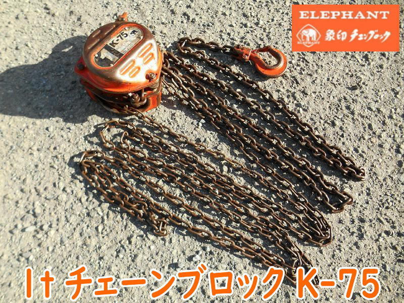 - ◆ 象印 K-75 チェーンブロック 1t 1000kg 1TON エレファント ホイスト 吊り上げ ウインチ 荷揚げ チェーン 手動 吊り金具
