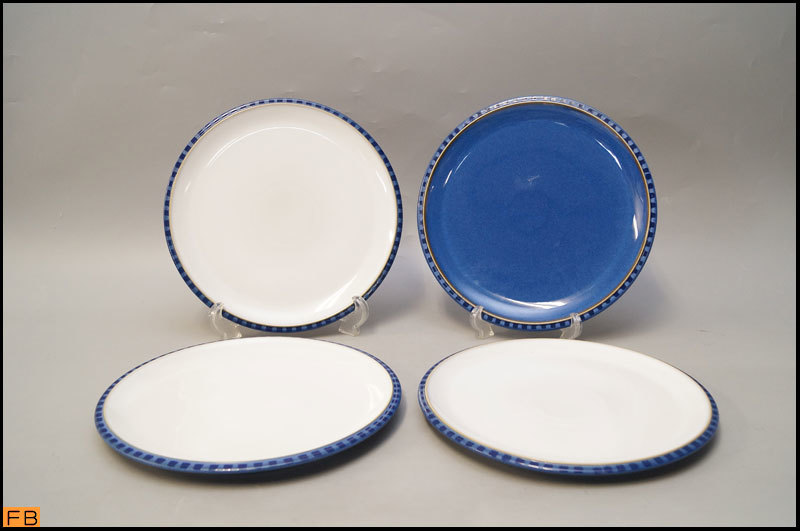 > 1345-デンビー◆プレート 4枚セット25.5㎝ ホワイト 3枚 ブルー 1枚 英国製 Denby