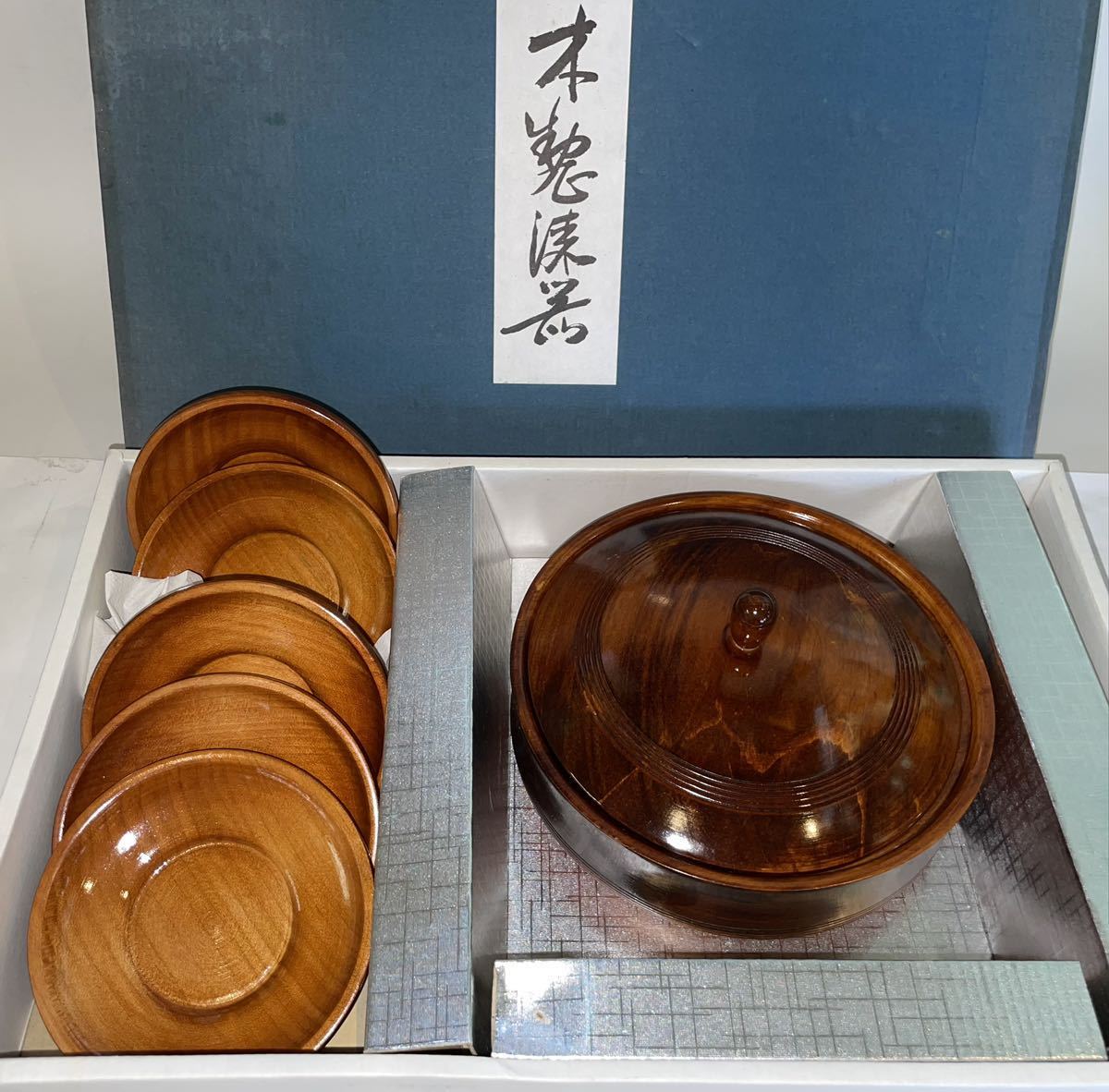 - ※※天然木の工芸品 菓子鉢 / 茶托 5客揃え 高級 漆器 未使用