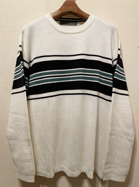 - グッドカラー00sオールドGIORDANOアクリル白/黒/緑ニット/セーターLボーダー胸/袖ライン切替デザイン好配色スキー2000s00年代y2kビンテージ