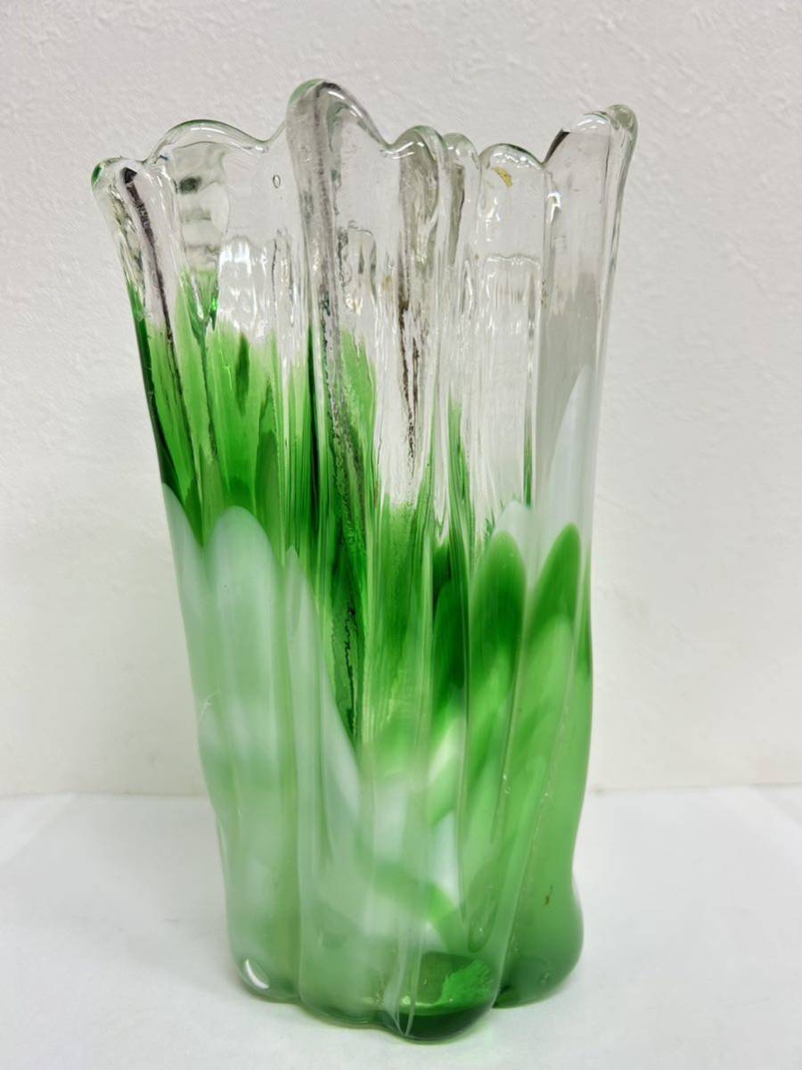 - K-0630【花瓶 ガラス レトロ みどり グリーン フリル】
