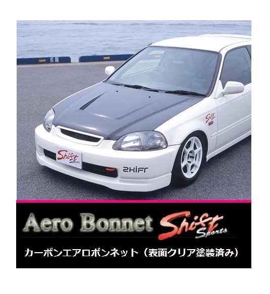 > ◆Shift sports カーボンエアロボンネット(表面クリア塗装済み) シビックタイプR EK9前期