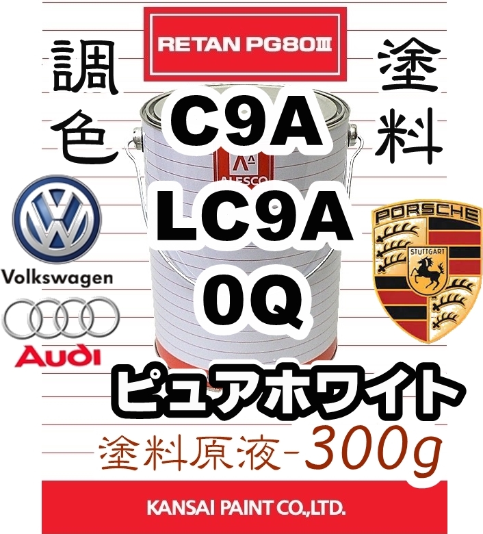 - 関西ペイント■レタンPG80 調色塗料【VW ワーゲン・アウディ・ポルシェ/LC9A, C9A, 0Q(同色)■ピュアホワイト 原液300g 】★2液ウレタン