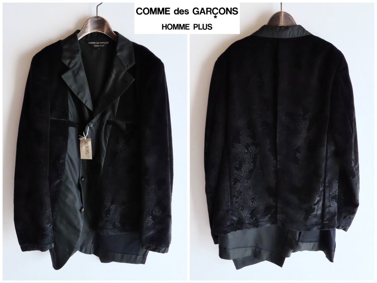 > 試着のみ 21AW COMME des GARCONS HOMME PLUS コムデギャルソンオムプリュス エンボスインサイドアウトサイドジャケット S ドッキング 黒