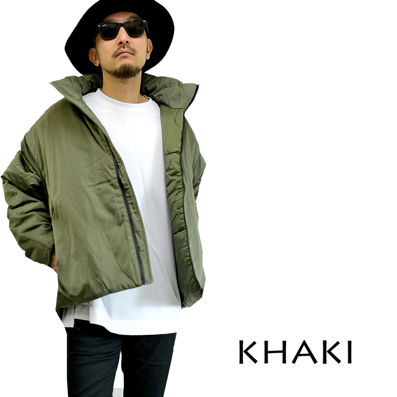 > ビックシルエット ボリュームスタンドネック 中綿ジャケット メンズ ダウン風 23463 新品カーキ M