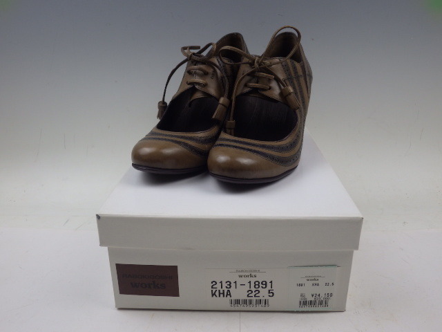 > 146【S.R】未使用 ラボキゴシ ワークス パンプス カーキ系 22.5㎝ 2131-1891 定価24,150円 香川発 m