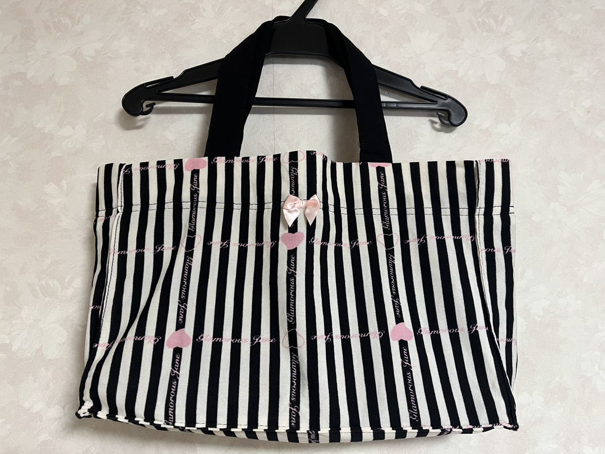 - 新品 GJ グラマラスジェーン ハートストライプトートバッグ リボン付き 姫 ギャル