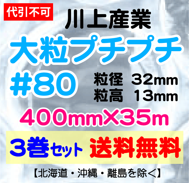 > 【川上産業 直送 ※代引き・夜間お届け不可】川上産業 #80 400mm×35m巻 3巻セット 大粒 エアパッキン・プチプチ・エアキャップ