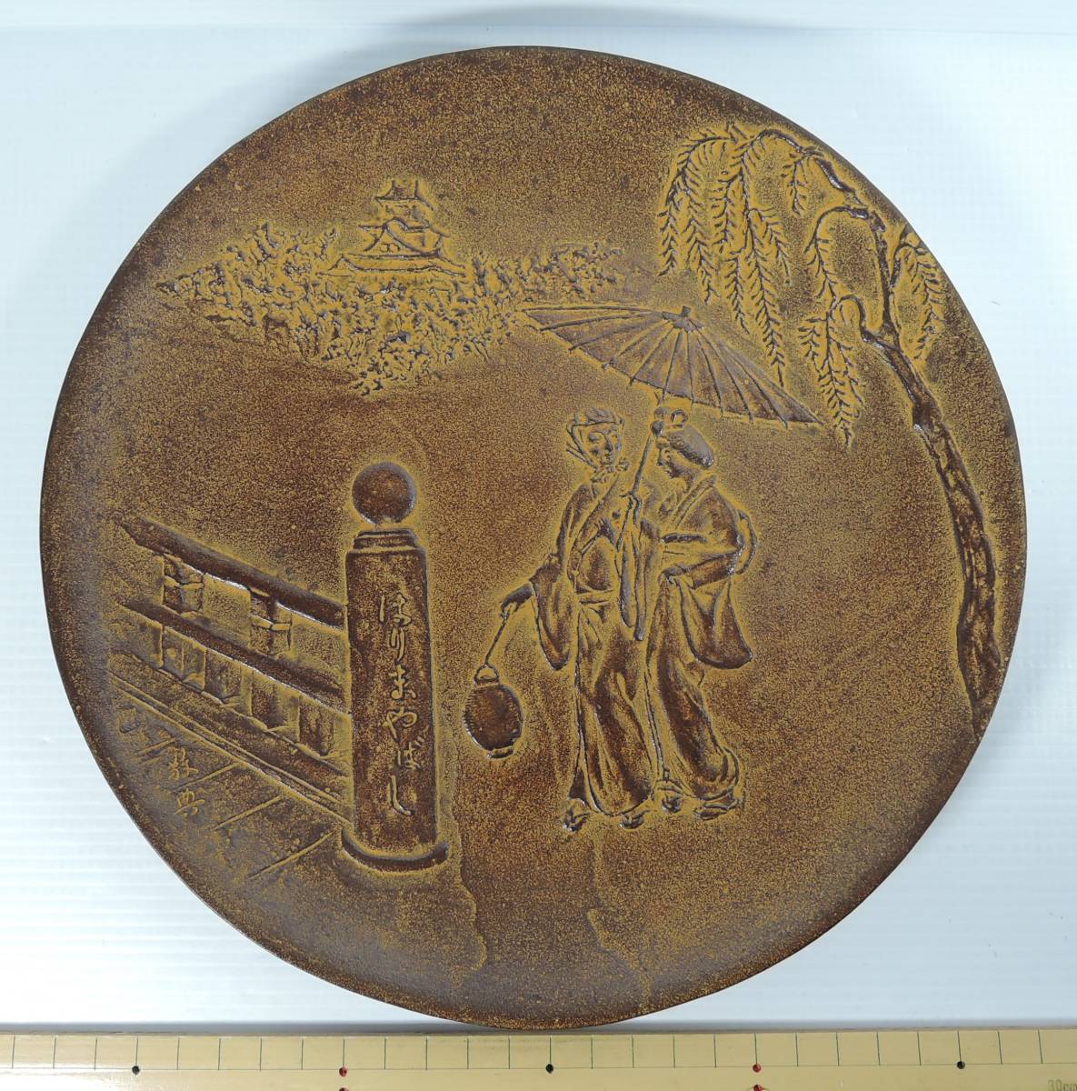 - ☆Y00■人間国宝 高橋敬典 土佐の高知の はりまや橋 鉄製 額皿/飾り皿/壁掛け■高知城/商品パンフレット付