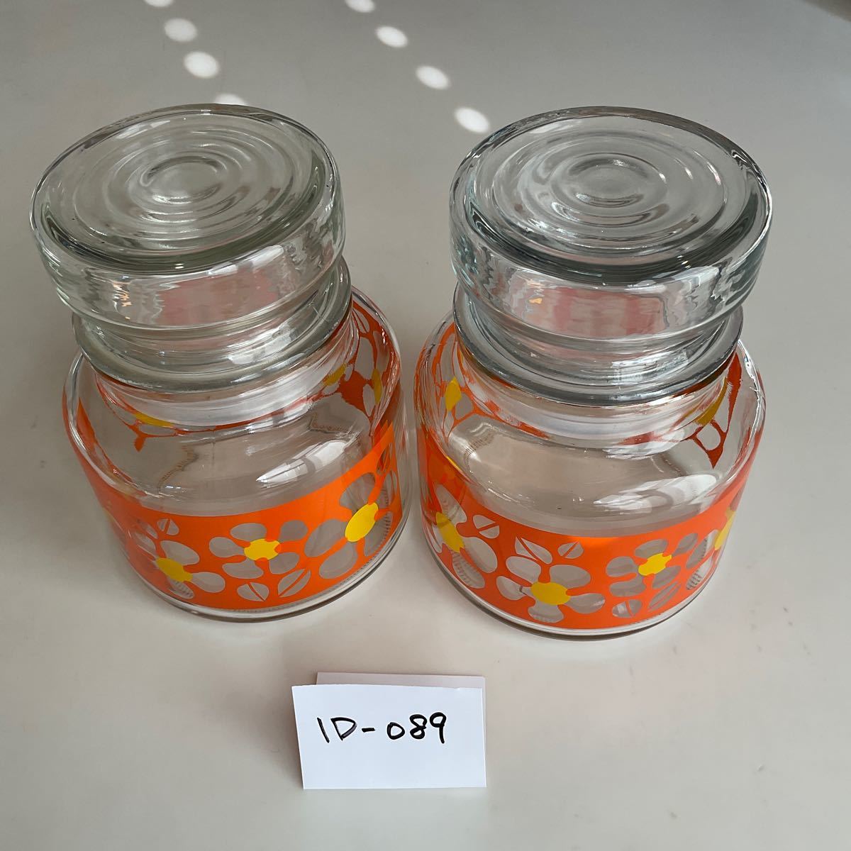 > ★ADERIA★石塚ガラス★キャンディポット ★当時物★蔵出し★1D-089★オレンジイエロー★昭和レトロ★ペア★日本製★アデリア★