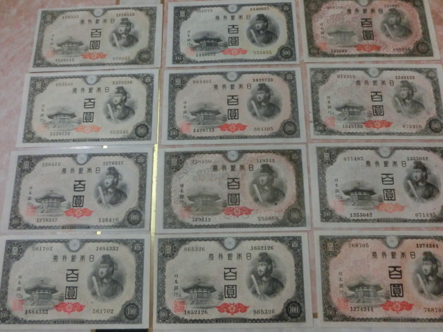 - ★ 日本銀行券A号100円 4次100円 全印刷工場12枚セット 上美品~ ★ No.925