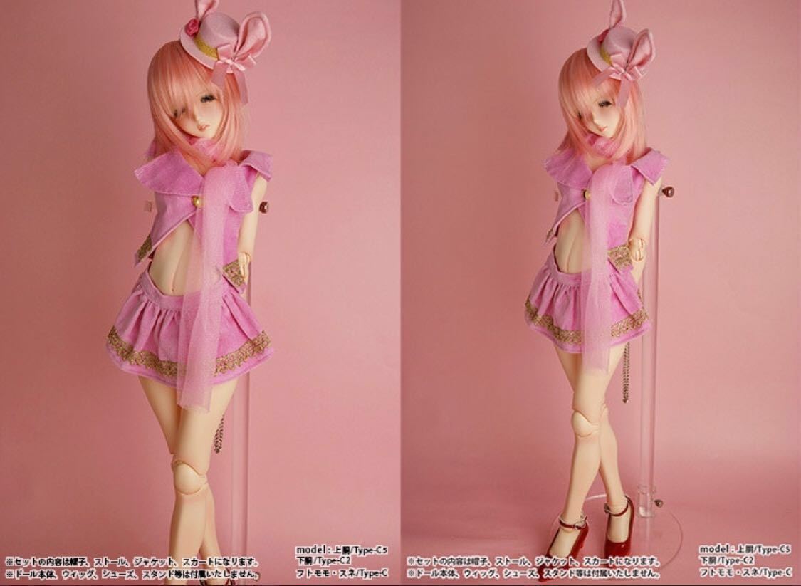 - ANGEL PHILIA vmf50 ドールうさぎコスチュームセット ツーピースフレアミニ&帽子 PINK msd mdd parabox オビツ50 アゾン50 東京ドール