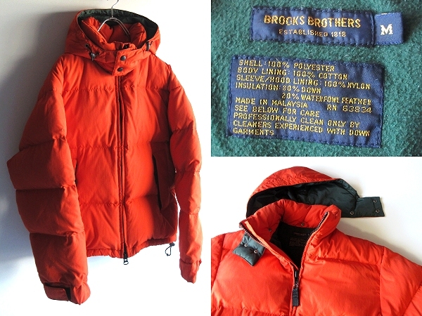 - 希少 80s-90sビンテージ BROOKS BROTHERS ブルックスブラザーズ フード取外可 ダブルジップ 2WAY ダウンジャケット M オレンジ グリーン