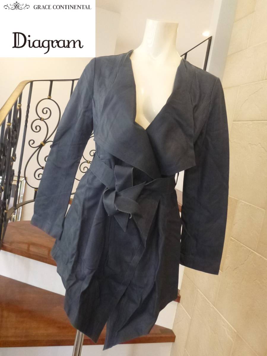 - 7万 美品 Diagram ダイアグラム ★グレースコンチネンタル 紺ネイビー 本革 やぎ革 コート 36 S相当