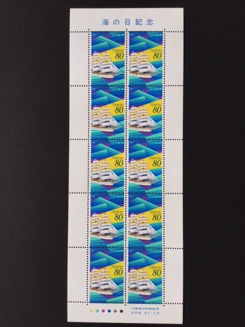 - 1996年 海の日記念 帆船「日本丸」 80円 1シート(10面) 切手 未使用