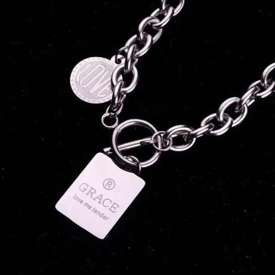 - 【セール】コインネックレス ユニセックス チタン オシャレ シンプル LOVE