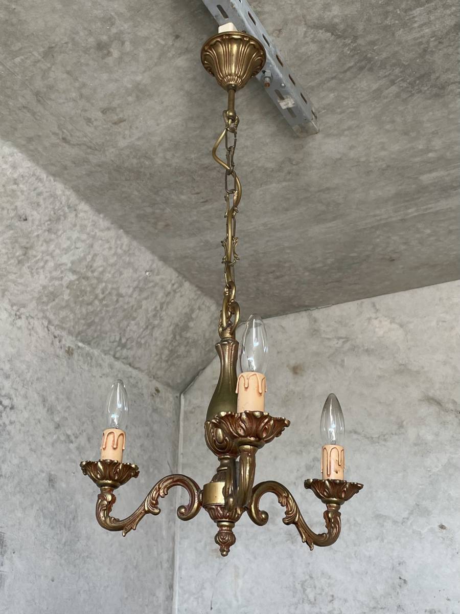 - 3-1. フランス アンティーク シャンデリア 3灯 キャンドル ライト 吊り下げ シーリング ブロンズ 店舗 什器 美容室 カフェ