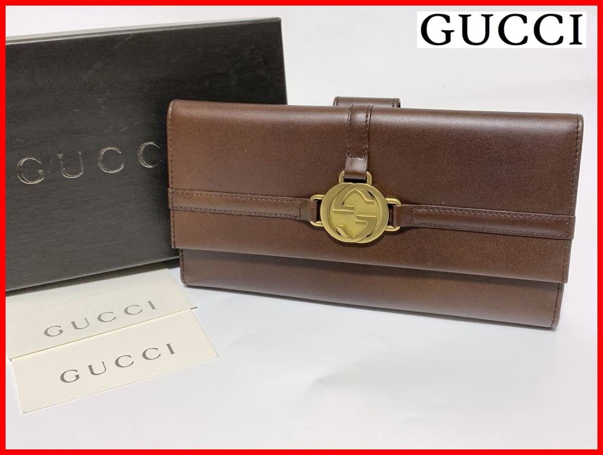 - 即決 GUCCI グッチ 三つ折り 長財布 茶 箱付 ウォレット レディース メンズ D8