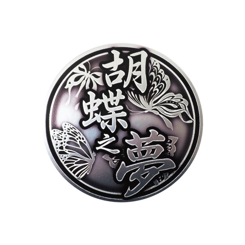 > (艶消し銀)熟語ステッカー 胡蝶之夢 銀文字銀蝶 10cm ことわざ 和柄 デコトラ トラック 蝶 バタフライ 漢字 カスタム