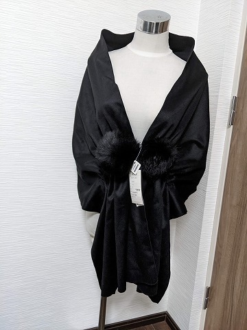 > 【送料無料】A981 未使用保管品 カシミヤ 100% カシミア フォックス 毛皮 マント ポンチョコート ショール キャンディーストール