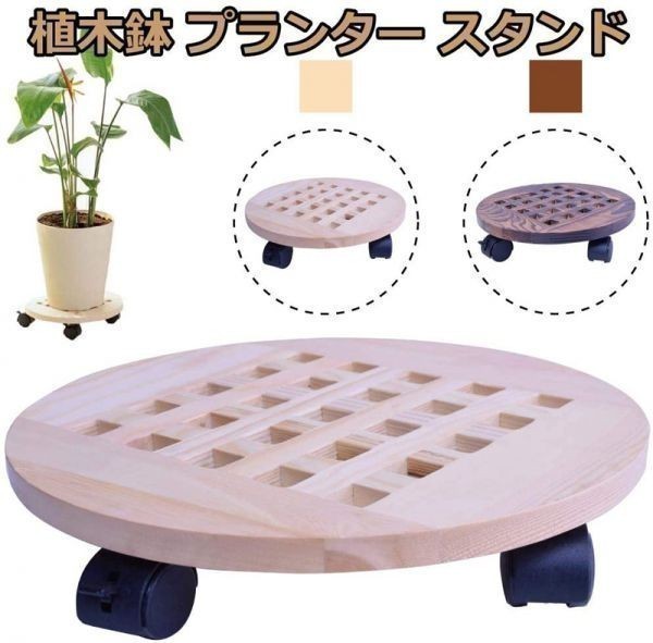 - 【 送料無料 】Freell ◆木製 プランタースタンド 植木鉢台 鉢置台 花台 360度 可動式 ストッパー付き 30cm 丸型 (ナチュラル)∧