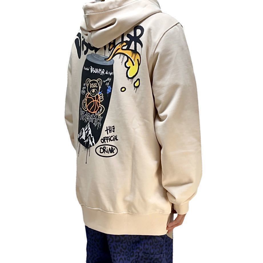 > 新品 DISCLAIMER ディスクレイマー バスケ テディベア くま 缶 ドリンク タギング ストリートアート パンク ヒップホップ パーカー XL(LL)