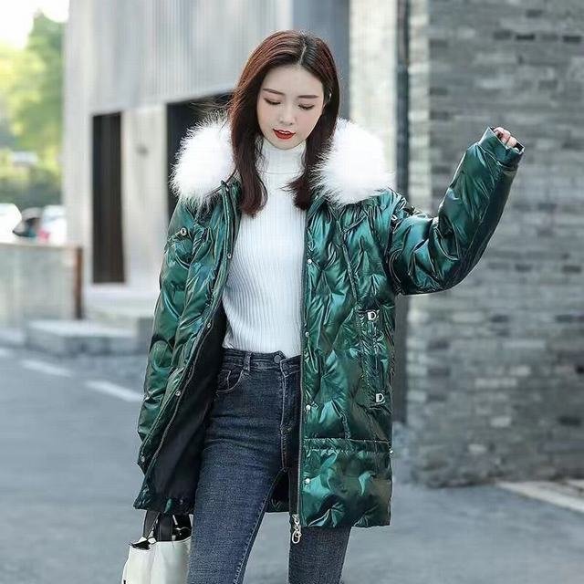 - レディース コート ブルゾン カジュアル ファーコート フード付き 防風 防寒 中綿 ミドル丈 ジャンパー 緑S