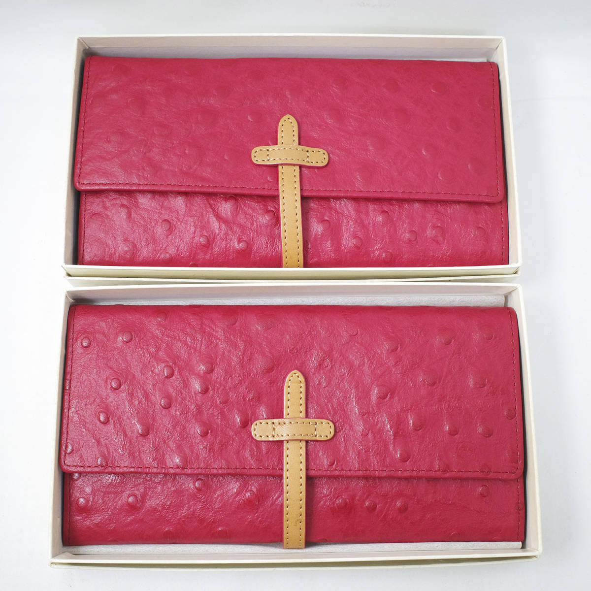 - refle【未使用?】 SAREINE 長財布 2個セット 赤 ピンク マゼンタ 革製? サレーヌ フェイシャルサロン? ノベルティ? [①]