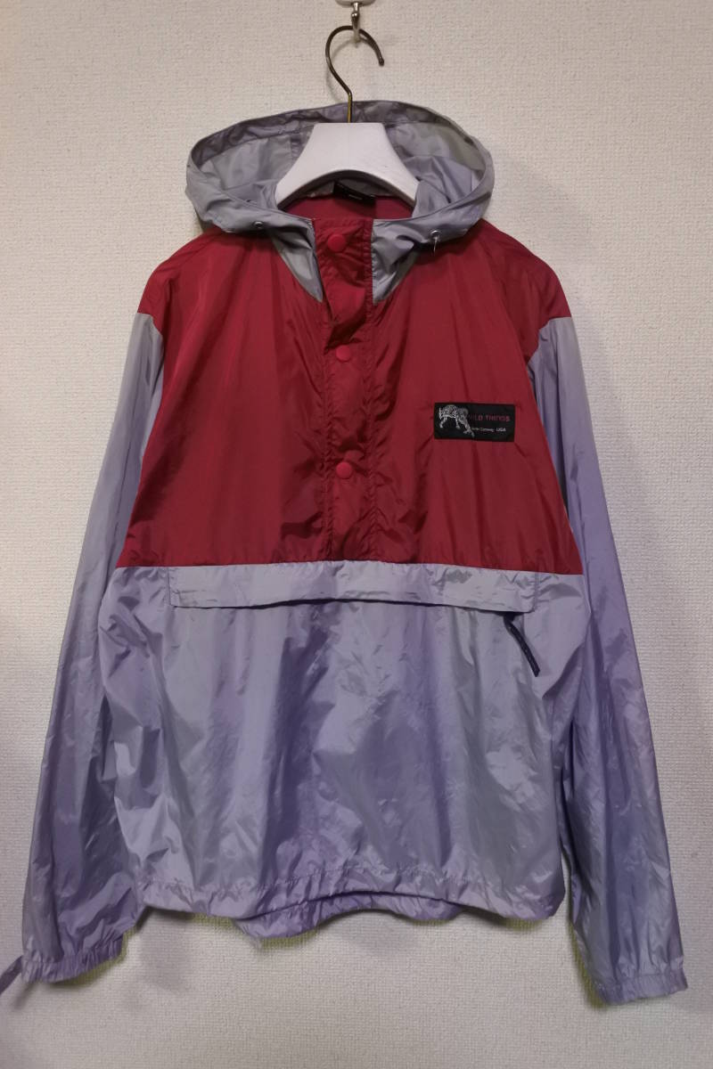 - 90's WILD THINGS ワイルドシングス ナイロン アノラックパーカー size S 旧ロゴ レッド×シルバー