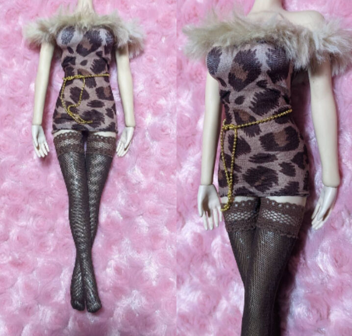 - 1/6ドール用 TBLeague ファイセンS07 クールガール 透けヒョウ柄 ボディコンシャス ガーターストッキング チェーンベルト