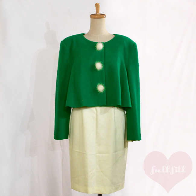 > 古着 アンサンブル セットアップ ツーピース 昭和 レトロ クリスマスコーデ ビンテージ ヴィンテージ vintage Xmas 衣装 ポンポン コート