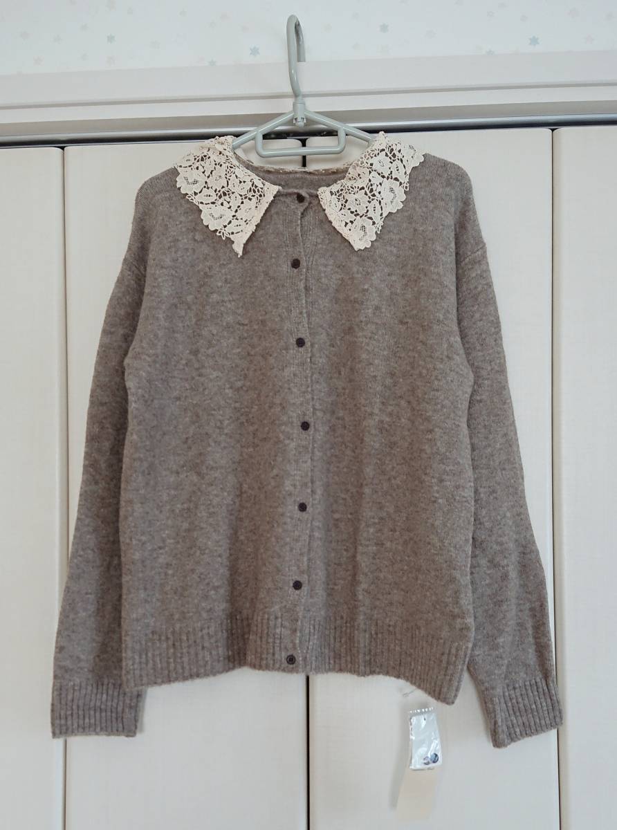 > サマンサモスモス★衿レース取り外しカーディガン・モカ★タグ付き