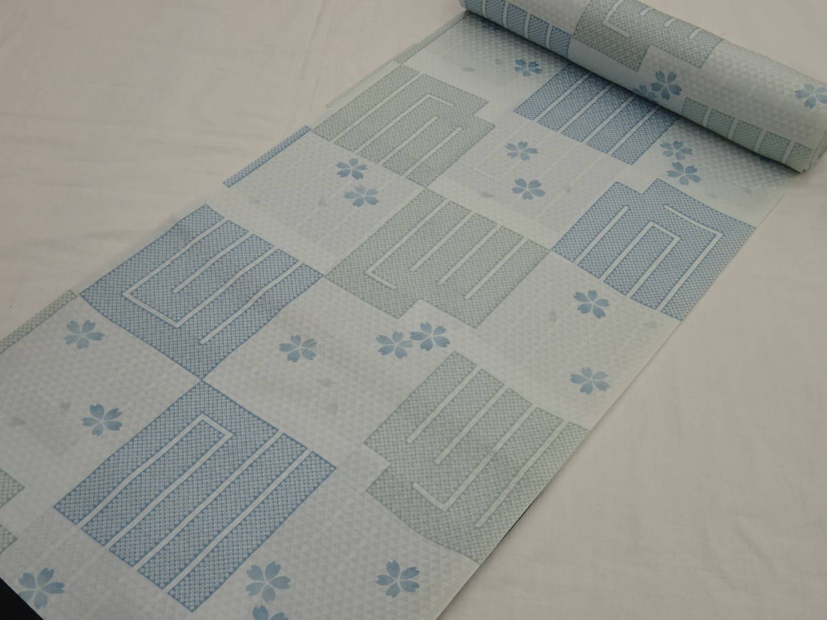 - 新品・正絹・反物★洒落物長襦袢★薄水色地に源氏香市松柄です