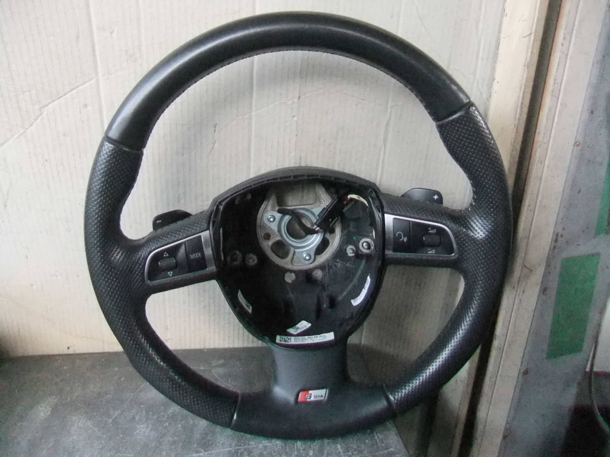 > ★ AUDI A5 S line パドルシフト付き 純正 レザ-ステアリング ブラックレザ- ブラックステッチ ワッパのみ