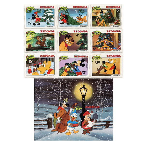 > ディズニー ミッキー チップ&デール 切手/小型シート1枚&切手9枚(プルートのクリスマスツリー) 発行国Redonda 1981年発行 新品