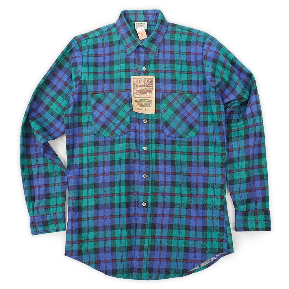 > デッドストック 90s ファイブブラザー FIVE BROTHER プリントネルシャツ USA製 珍品 古着 (-0962) グリーン系 チェック柄 M-TALL