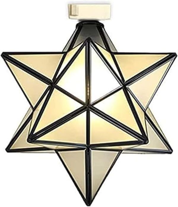 - OTD 【黒枠 スリガラス】ガラス スター 星 星形 黒枠 工事不要 E26口金 LED対応 天井照明 インテリア アンティーク モダン 直接引掛け式