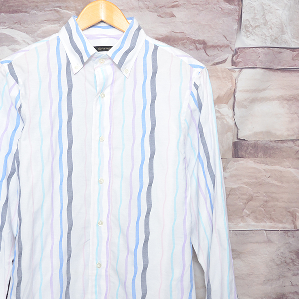 - AS5543 シップス SHIPS ボタンダウン 長袖シャツ 3 / L 肩43 波柄 メール便 xq