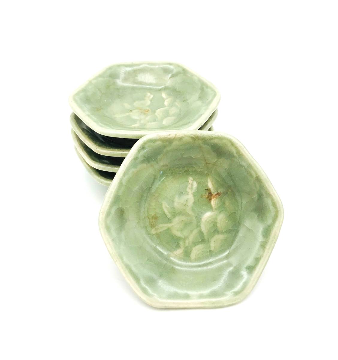 - 青磁『波兎』小皿 豆皿 銘々皿 5枚セット 三田青磁 蔵出し 時代物 R5-0081